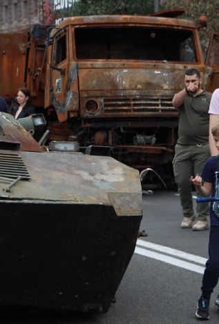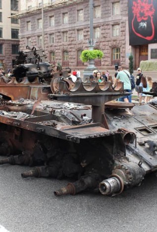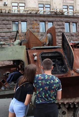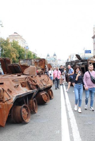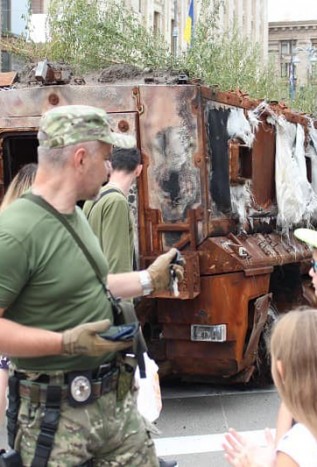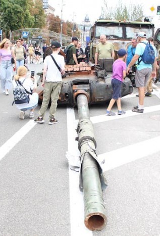 Залишки ворожої техніки виставлені у центрі Києва напередодні Дня Незалежності. Нині мешканці та гості Києва мають можливість побачити на власні очі залишки «другої армії світу», спалені українськими воїнами у гарячих боях.