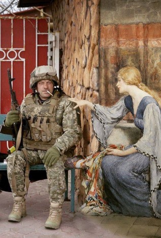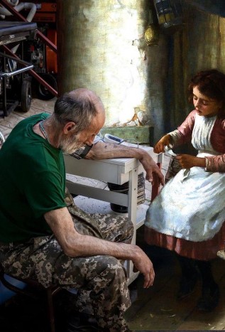 Французька художниця створила серію колажів, присвячену темі війни в України. Вона поєднує знімки фотографів з війни в Україні із відомими картинами.