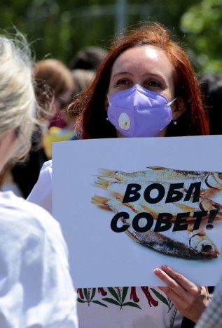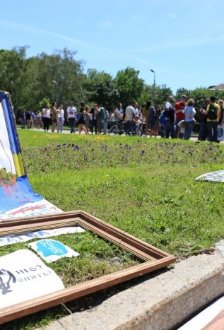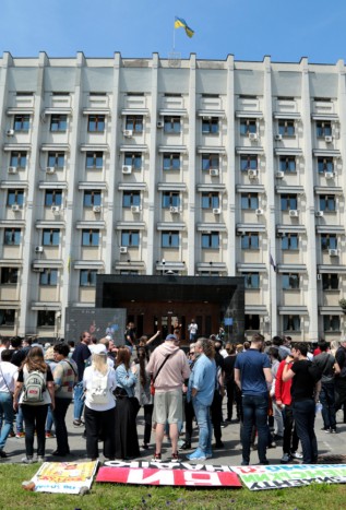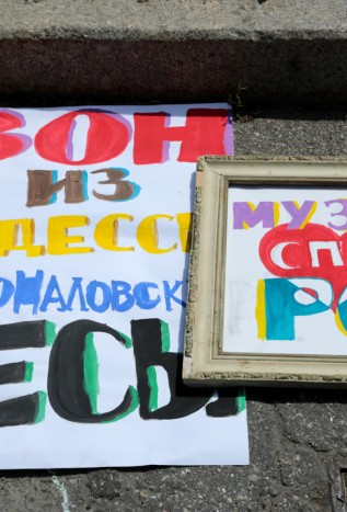 Люди принесли множество плакатов, а со сцены в поддержку художника, директора Одесского художественного музея выступили деятели культуры, политики, журналисты. С помощью онлайн-связи участников митинга поддержали Сергей Жадан, Святослав Вакарчук, директор Центра Довженко Иван Козленко, мэр Львова Андрей Садовый и другие люди, известные всей Украине.