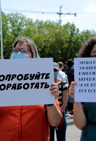 Отметим, что это уже второй митинг в поддержку Александра Ройтбурда на этом месте, – первый состоялся в сентябре прошлого года, и он дал результат, – художник остался во главе музея.